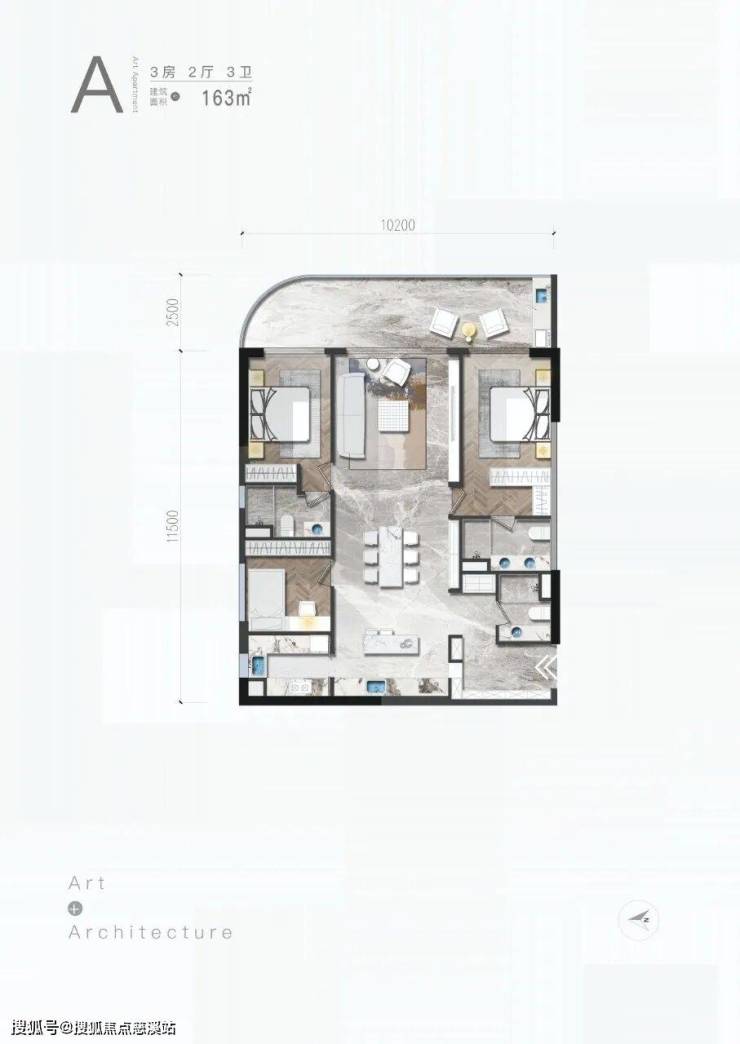A户型/3房/2厅/3卫/163㎡