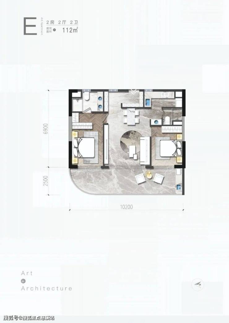 E户型/2房/2厅/2卫/112㎡