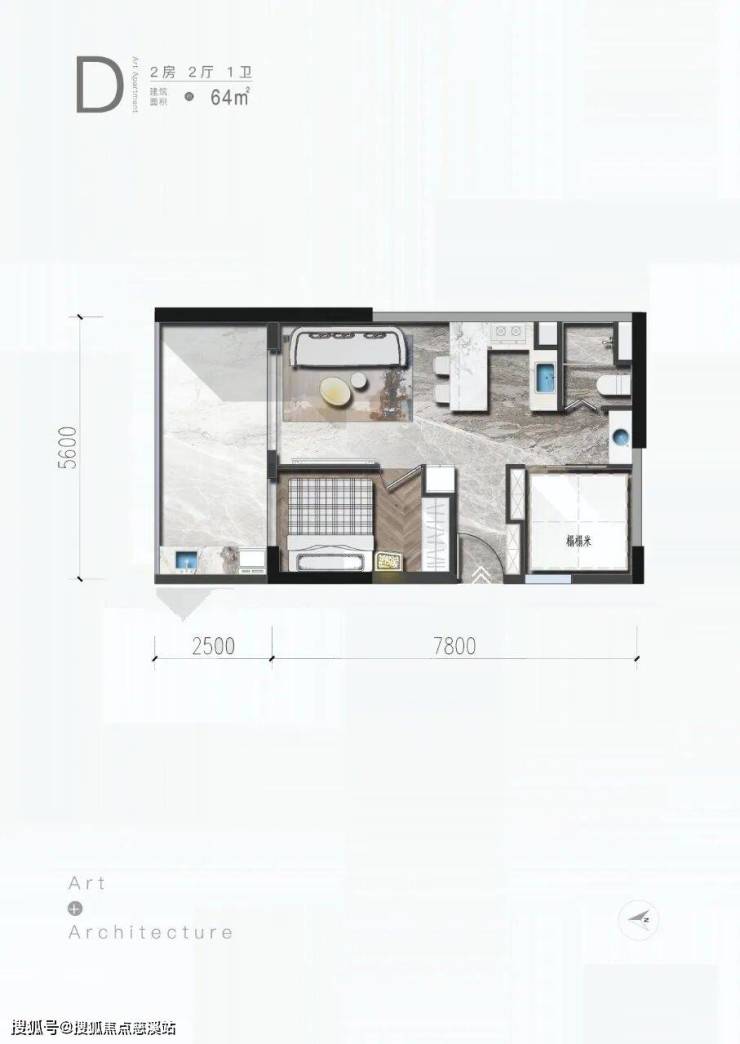 D户型/2房/2厅/1卫/64㎡