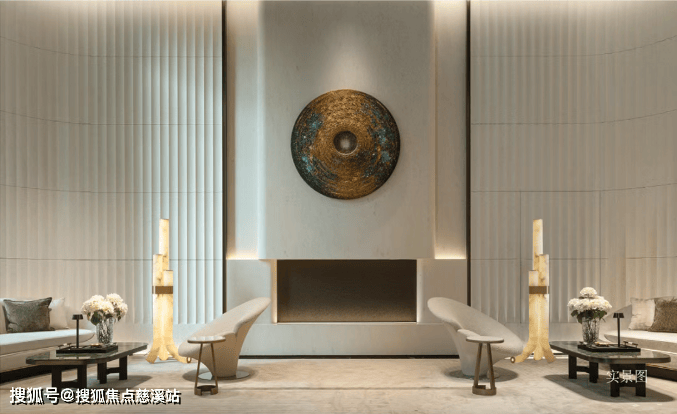 皇家白玉的仪式感:归家环岛前庭中央,整石切割的皇家白玉发光圆盘,形似平安扣,寓意“财运亨通”;7米高黄铜大门左右矗立四幅皇家白玉玉璧,晨光漫溢时,温润玉泽如神鹿衔星坠入凡尘。