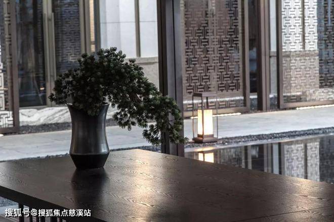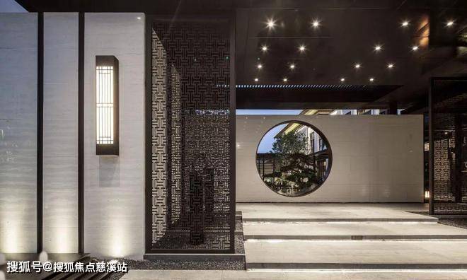 穿过城市的喧嚣走近九号公馆,古色古香的门廊映入眼帘,庄重典雅,两侧深褐色格栅为空间营造出序列之感。