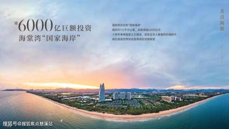 约22公里三亚旅奢海岸,是海南自贸港唯一"国"字头开发的休闲度假湾区,以顶层蓝图设计,6000亿顶奢配套矩阵,成就湾区塔尖生活及资产高度。