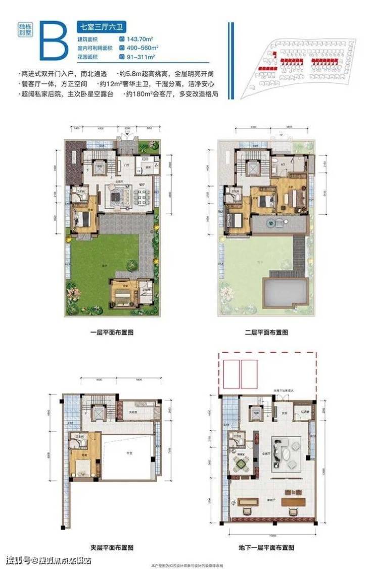 平墅:约109—169㎡ 一梯一户,康养平墅