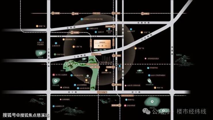 鼎立济南CBD核芯,纵享便捷立体交通,约3公里内纵揽商、产、学、园、医、文等高净值精粹配套,执掌万般优越,启新塔尖级高光生活版图。