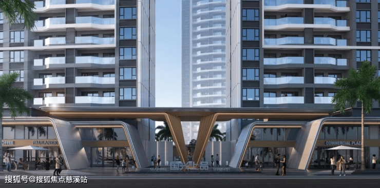 【社区入口】约12米挑高社区入口,大气磅礴,以酒店式迎宾入口引领,镜面水景搭配沿途景观树阵、灌木绿荫,让每一位居者尽享归家尊崇。