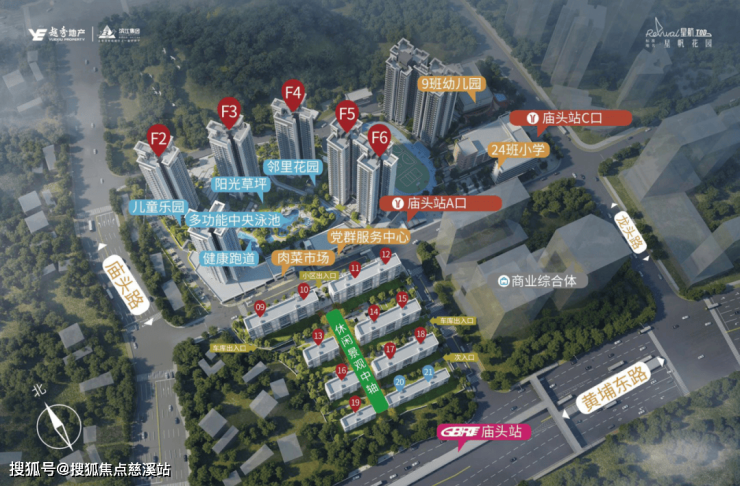教育——社区内设9班幼儿园和24班小学;庙头板块旧改后将新增6所学校,包括有60班完全中学1所、36班小学和30班小学各1所、幼儿园3所等;