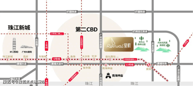 地铁——广州地铁5号线东延线庙头站上盖,地铁半小时直达广州主城区;距离13号线南海神庙站700米,未来串联白云、天河、黄埔和增城四区;