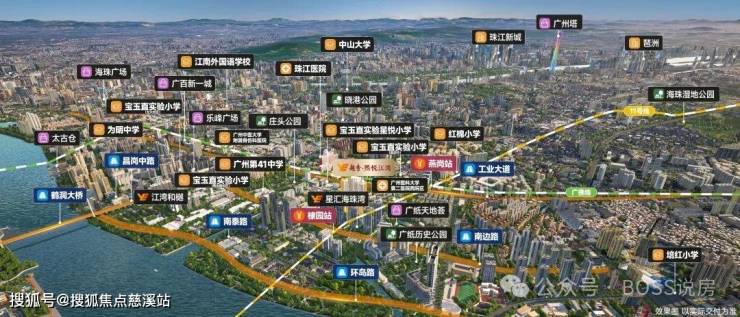 地铁:距离广佛线燕岗站B口约 400 米,广州地铁 11 号线棣园站约 250 米,7 站可达南站,7 站可达琶洲,可快速连接全城,虹吸广佛优质资源