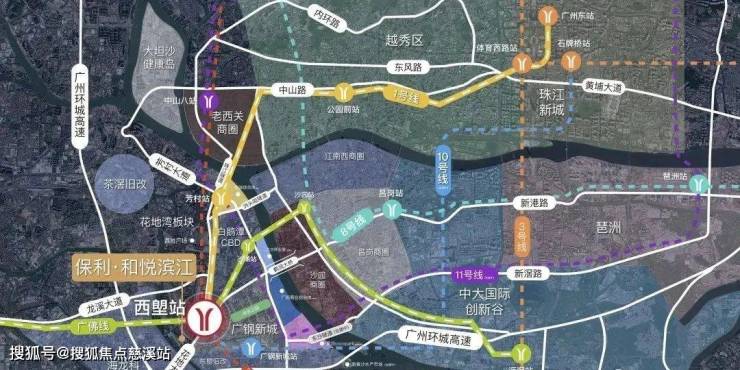 项目所处的白鹅潭商圈,交通路网四通八达,总计将有13条轨道汇聚于此,所以保利和悦滨江所享受到的地铁红利,超乎想象。