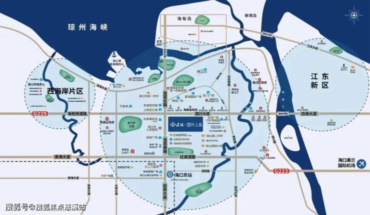 从位置来看,项目位于海口市龙昆南路与国兴大道交汇处(龙昆南23-1号)。也就是地处龙昆南中轴+国兴政务走廊+海秀快速路立体交汇,三纵三横黄金路网贯通全城。