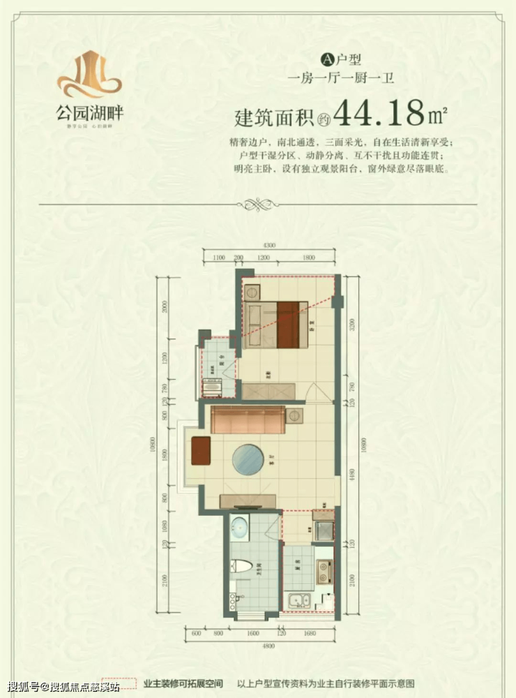 A户型 建筑面积44.18㎡ 一室一厅一厨一卫
