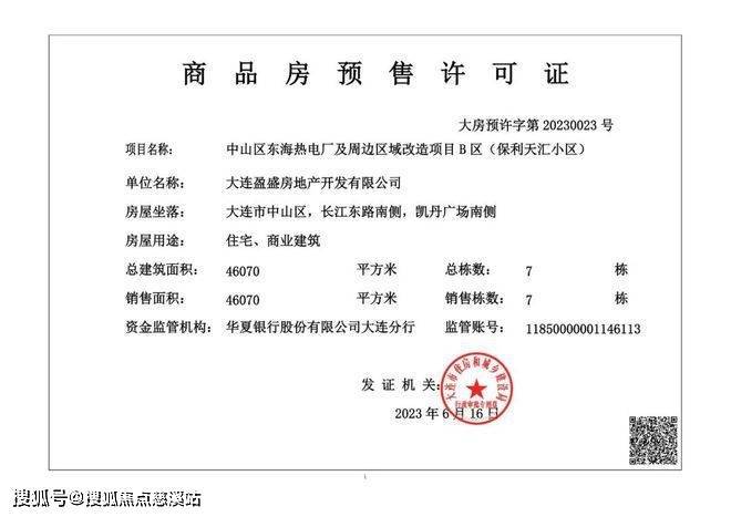 预售许可证号:大房预许字第20230023号