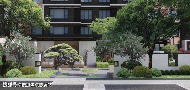 主景为叠石水景,增加假山置石,丰富植物品种和层次,使得庭院感更强,在入园的开端便充分释放园林价值。
