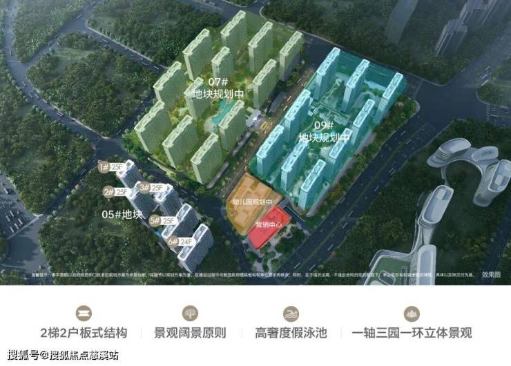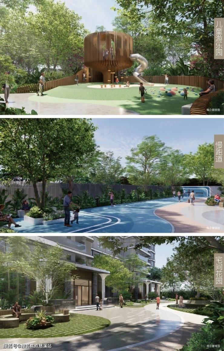 设置城市会客厅、泳池廊架、约307㎡泳池区、儿童游乐园、约350米健康跑道、迷你运动场等,可享、可赏、可玩的体验式园景。