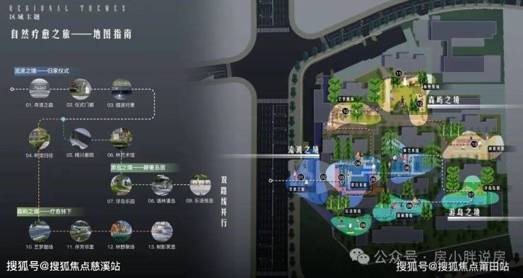 外临水岸,内藏森屿,社区规划流波、游岛、森屿三大主题意境,一轴七园复合园林景观。让社区成为集艺术、健康、疗愈于一身的多功能生活社交空间。
