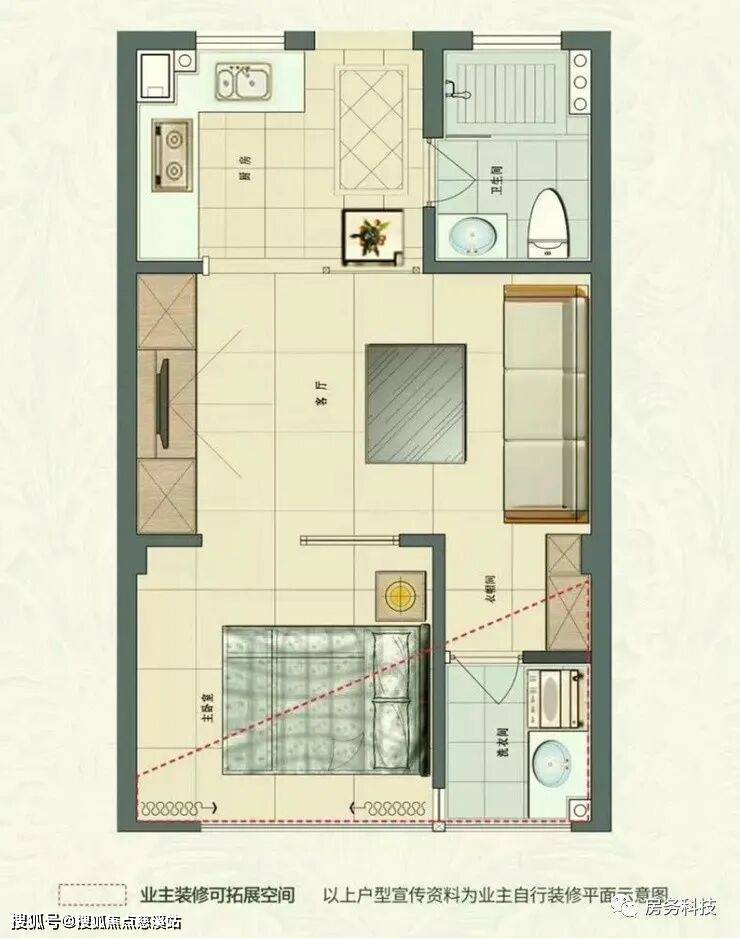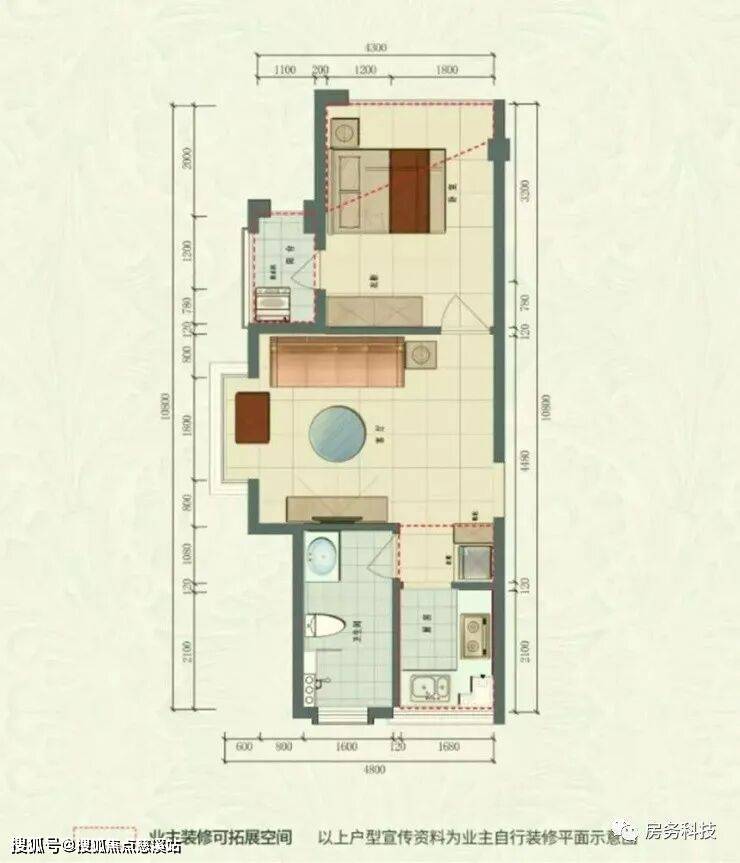 B户型 建筑面积44.88㎡一室一厅一厨一卫