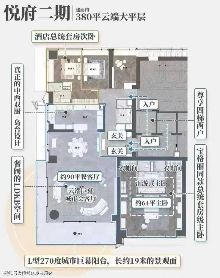 项目首开至今,便以磅礴之势,横扫城市高阶购买力。如今,悦府迎来了又一个城市高光时刻:项目二期的建面约380平云端大平层启幕。