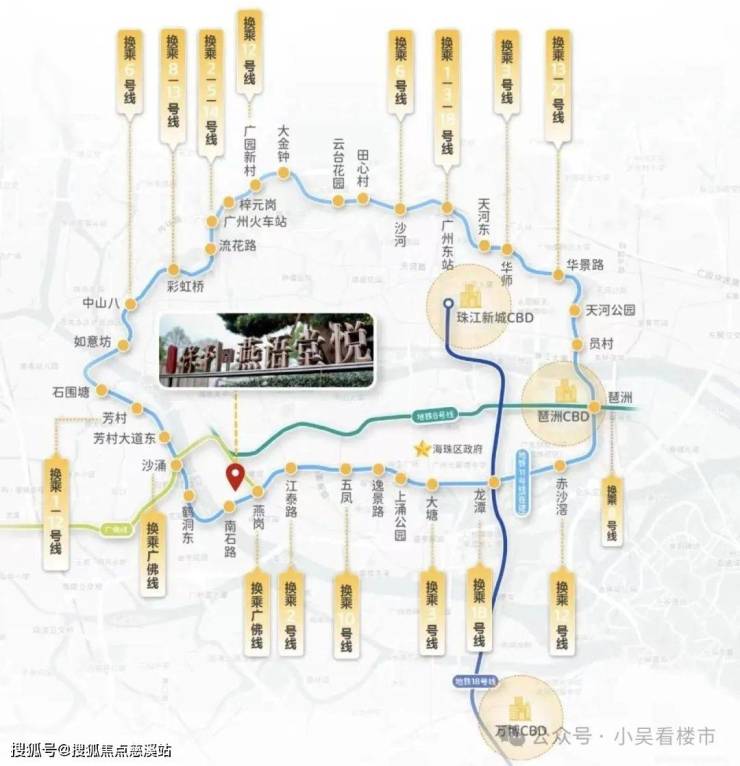 项目家门口就是地铁广佛线和11号线的交汇处燕岗站,算是双地铁盘了,通过广佛线可转1、3号线,7个站可到珠江新城,11号线是广州首条大环线,该条线路能覆盖琶洲、金融城、天河公园、广州东、广州火车站和白鹅潭,而且,11号线还将是彻底打通广州地铁线网的“换乘之王”,全线32个站点中,有26个为换乘站,16个与既有线路换乘,含金量,不言而喻,通勤属性非常高。