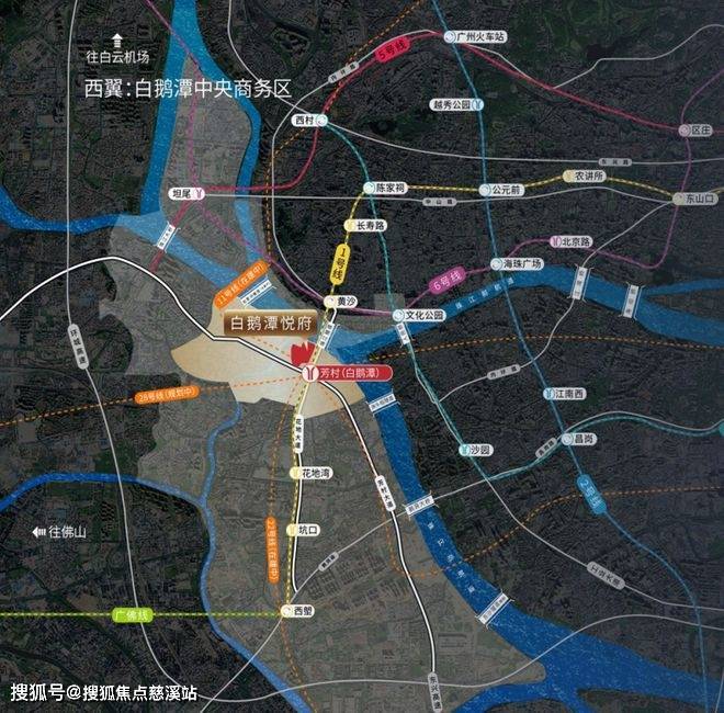 白鹅潭悦府距离地铁芳村站约400米,片区未来1号线、11/22号线(在建)、以及规划中的28号线等4条地铁交汇,业主可以直达越秀、天河、海珠,都算是非常便利。