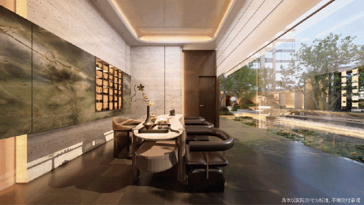 为了让业主时刻感受到自然的无界围合,遴选透光率超91.5%的巨幕玻璃,打造近80㎡巨幅橱窗,在此静坐,景色自来,形成“室内艺术馆,室外自然画”的沉浸式体验。