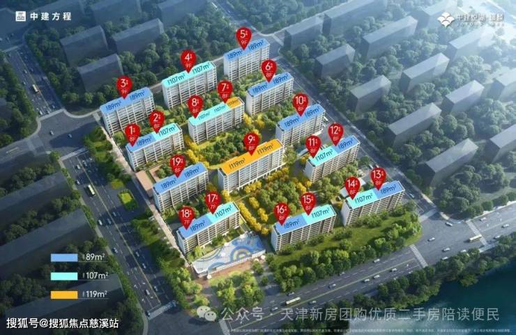 主力户型:建筑面积约89㎡(三室两厅两卫)、107㎡(三室两厅两卫)、119㎡(三室两厅两卫)。