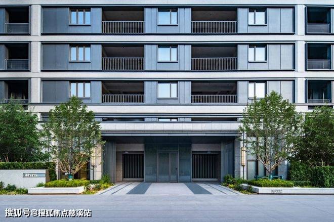 入户空间设计精致细腻,从门廊到大堂,处处彰显高品质和舒适感。入户大堂外部采用现代简约的浅灰色外立面,配以浅色蓝宝石的干挂石材,辅以金属材质的搭配,两侧的斜切面的处理,更提升建筑立面的层次感。楼栋标识指引清晰明了,两侧对称的花池装置植物丰富,为空间增添自然生机,完美融合室内外设计,营造温馨时尚的居住体验。
