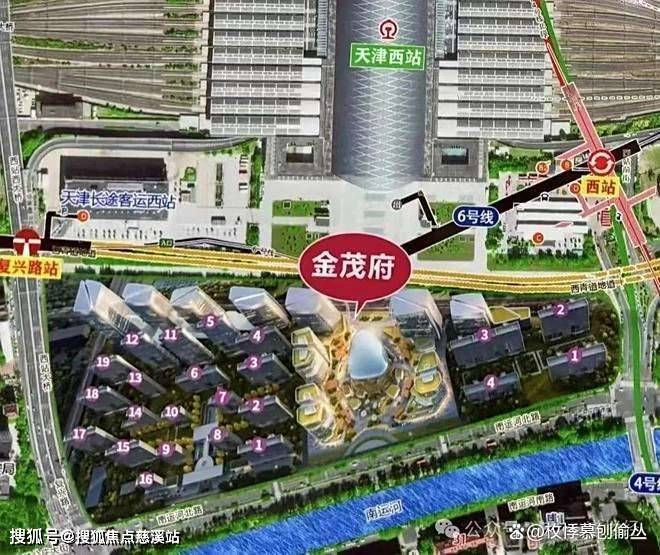 TOD 综合体定位:紧邻天津西站南广场(直线 300 米),依托高铁枢纽与地铁 1/4/6 号线,构建 “高铁 + 地铁 + 产商居” 一体化超级社区。地下 7 层交通核串联 8 条高铁线路,地上规划总部办公、山姆会员店(2025 年底开业)及特色商业,形成 “垂直城市” 格局。