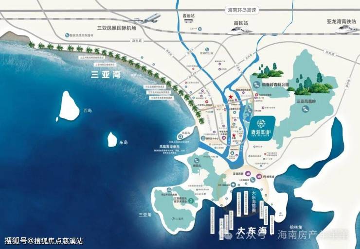 紧邻三亚中央商务区,南面大东海,北面迎宾路,东靠凤凰岭,西面三亚湾、大东海双湾交汇,门前是三亚的母亲河:临春河和三亚河,尽占城芯地利,矜贵地脉,以城芯、半山、瞰海、临河的天际视野,著写当世向往。