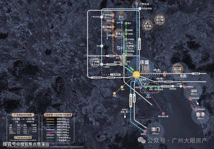 通过庆盛站搭乘广深高铁,9分钟到东莞虎门、30分钟到深圳北、35分钟到西九龙。