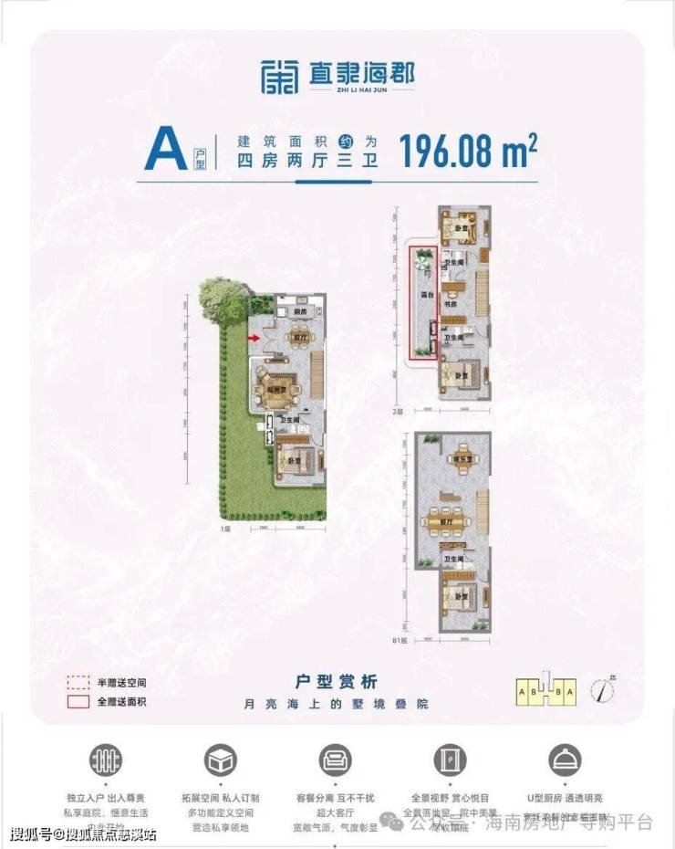 A户型:建面约196㎡,共三层