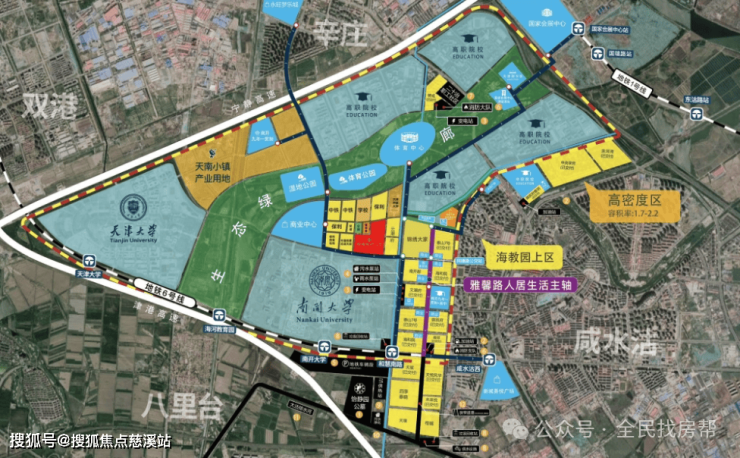 天津海河教育园区是国家级高等职业教育改革实验区、教育部直属高等教育示范区、天津市科技研发创新示范区。规划总用地37平方公里,规划办学规模20万人,居住人口10万人。规划区域内现状植被茂盛,河流水系遍布,可以营造出优美宜人的生态环境。实现教育、居住、产业"三区联动",带动整个区域高新技术产业和现代服务业的发展。