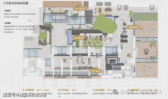 Ⅲ 街区聚场:与周边特色街区相融,由商业空间延申的街区休闲聚场,打造极具烟火气的社区氛围。