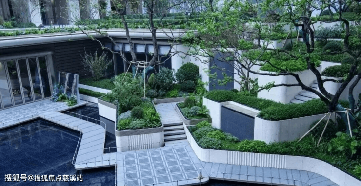同时,在抬高式的设计下,首层架空层与社区花园相连通,归家时穿过抬升的景观大堂,天然的内外高差带来独特的游园体验感,让园林更有趣味性。