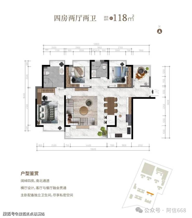 2、118平米四房两卫