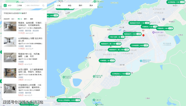 即使是梅溪湖,也是早期在桃花岭下、梅溪湖南岸的“山环水抱”之地,依托长沙top级双名校“博才梅溪湖小学+师大附中梅溪湖中学”,打造了几个别墅豪宅,早已卖光光,目前二手单价最高近5万,单套上千万,且缺了商业和地铁。