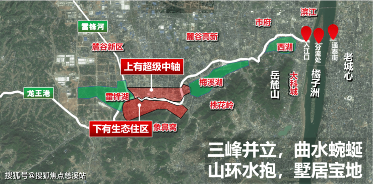 龙王港向东去,地铁6号线向西来,在龙王港和雷锋湖南岸、象鼻窝山脚,正C位,集天然与人工之力,即将成就一个“山环、水抱、名校立、地铁通”宜居墅区大境。