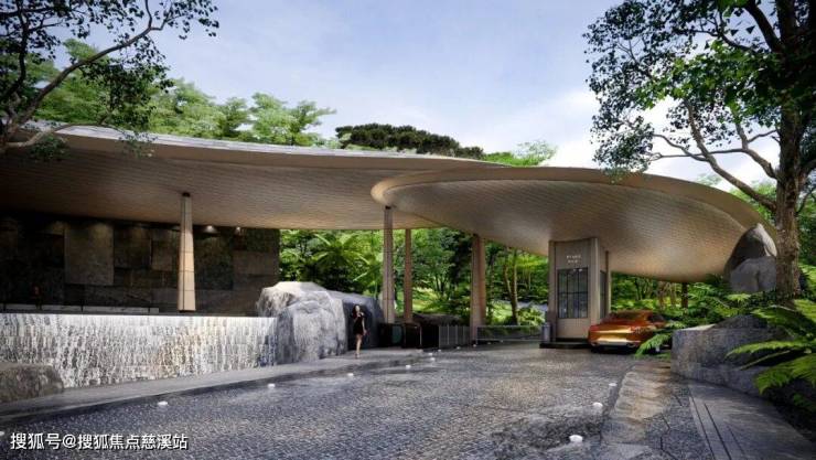 主入口艺术飞廊以奢石、铝板勾勒出独特艺术线条,搭配流光叠水的轻盈律动,一场礼遇身心的尊崇归家仪式感,自此悠然启幕。