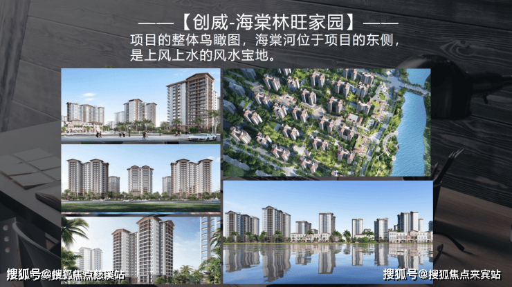 项目的整体鸟瞰图,海棠河位于项目的东侧,是上风上水的风水宝地。