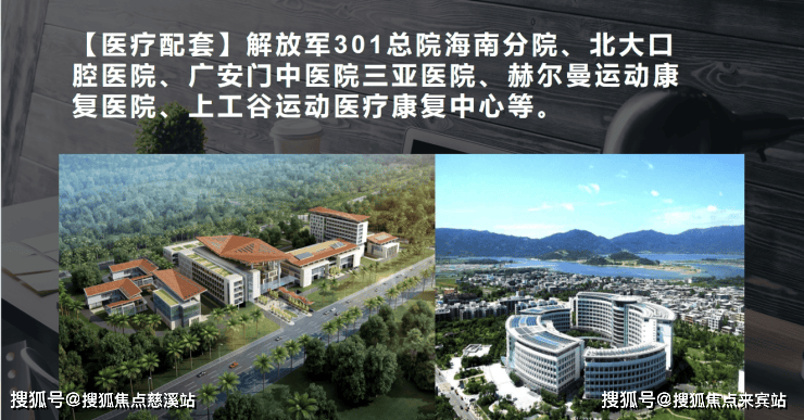 【医疗配套】解放军301总院海南分院、北大口腔医院、广安门中医院三亚医院、赫尔曼运动康复医院、上工谷运动医疗康复中心等。