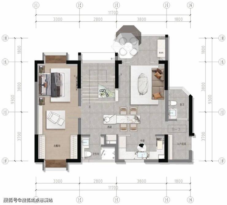 【B3 奢阔大平层 建面约89㎡ 三室两厅两卫】