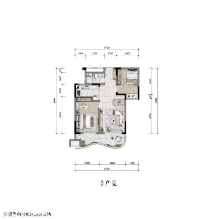 ▼“D”户型图约85㎡两室两厅一卫▼