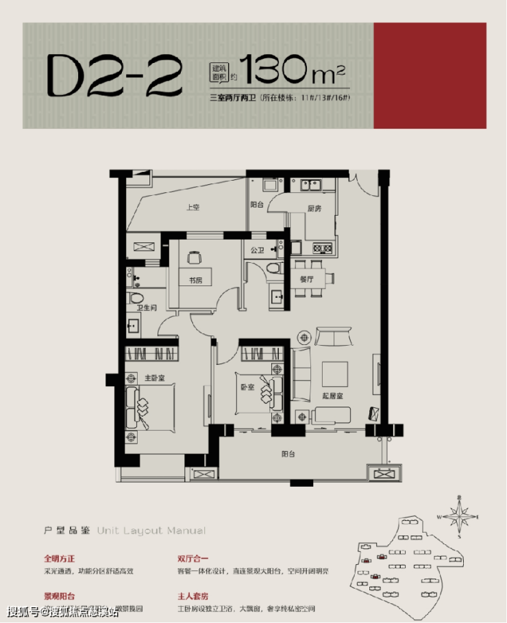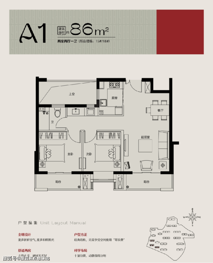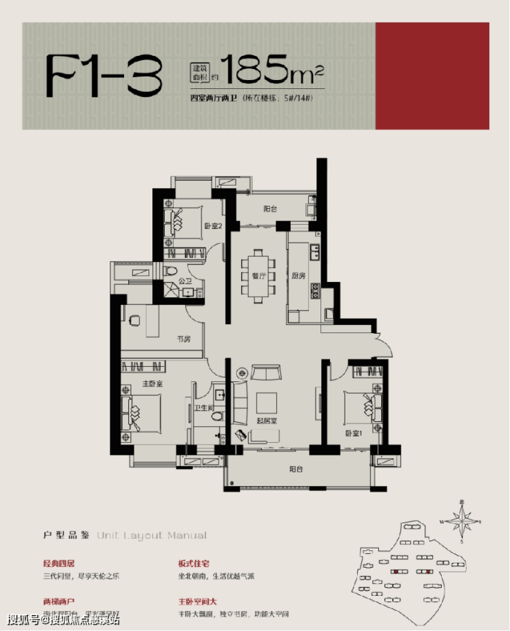 建面约 85-225 ㎡板式阔宅,户型从舒适两居至阔绰五居,不同户型满足不同群体的置业需求。