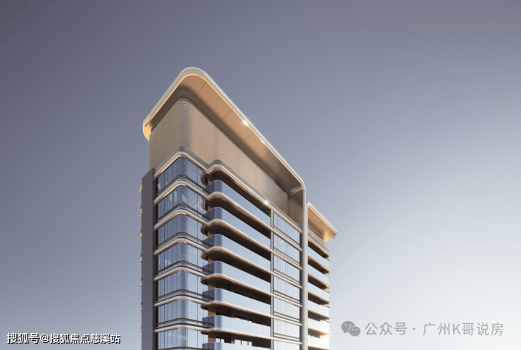 微弧流线设计,区别于多数豪宅的横平竖直线条,配合无柱转角设计,形成曲面屏式光幕立面。