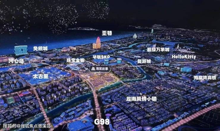 海棠故事—海棠湾核心价值区第一门户与三亚国际免税城、河心岛、太古里、周大生珠宝金街、华润超级万象城,顶流商业IP聚集,共筑千亿商业矩阵。