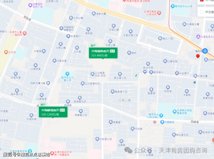 南开中学、天津一中、耀华中学、实验中学4所市五所,均在项目约3公里直线距离内(不作为入学或升学承诺)。