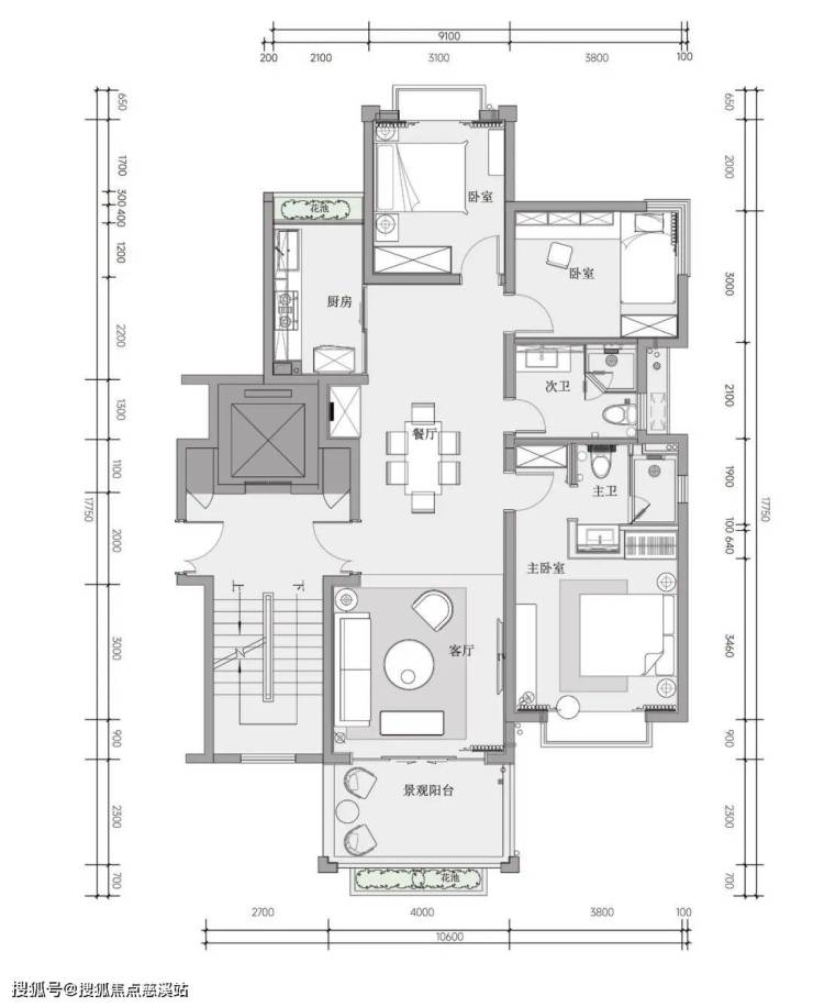 A户型:建筑面积约110平方米三房两厅两卫