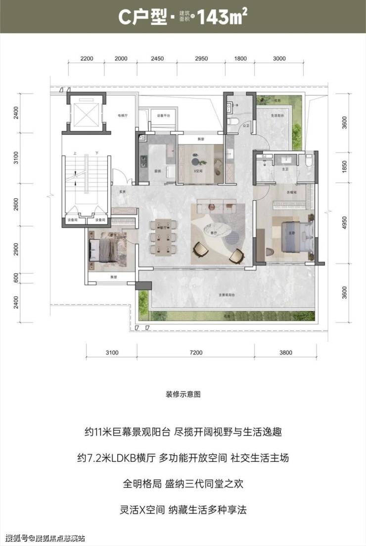 【面积区间】建筑面积约110㎡、131㎡、143㎡、195㎡