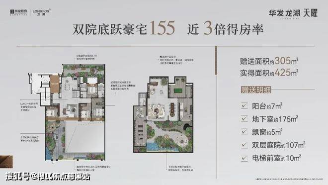首先,得房率方面,洋一为近3倍得房率,买155平得425平。