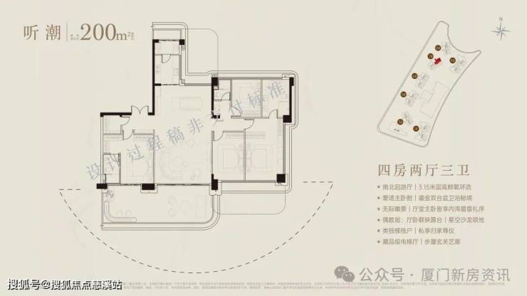 御宸天悦前排3梯2户,层高3米3,五缘湾最大平层层高!后排2梯2户,层高3.15米,和保利天悦、恒禾七尚一样高。