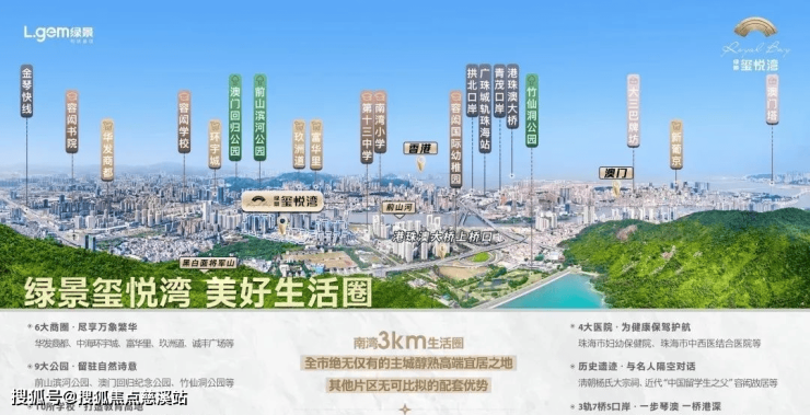 ◎南湾——雄踞珠海城市中心,是港珠澳双重红利承接地。出则国际前沿港澳琴,入则主城中心富人区,是离琴澳最近又优于琴澳最具居住属性的豪宅片区。